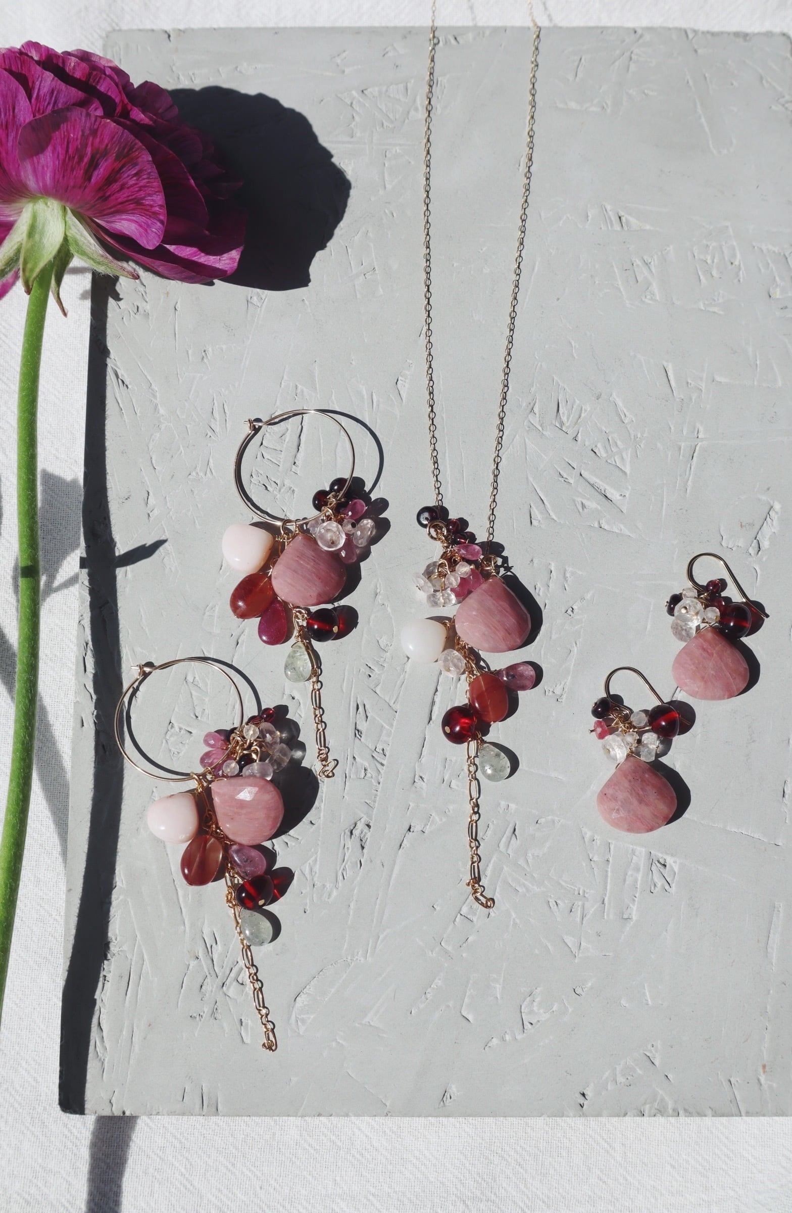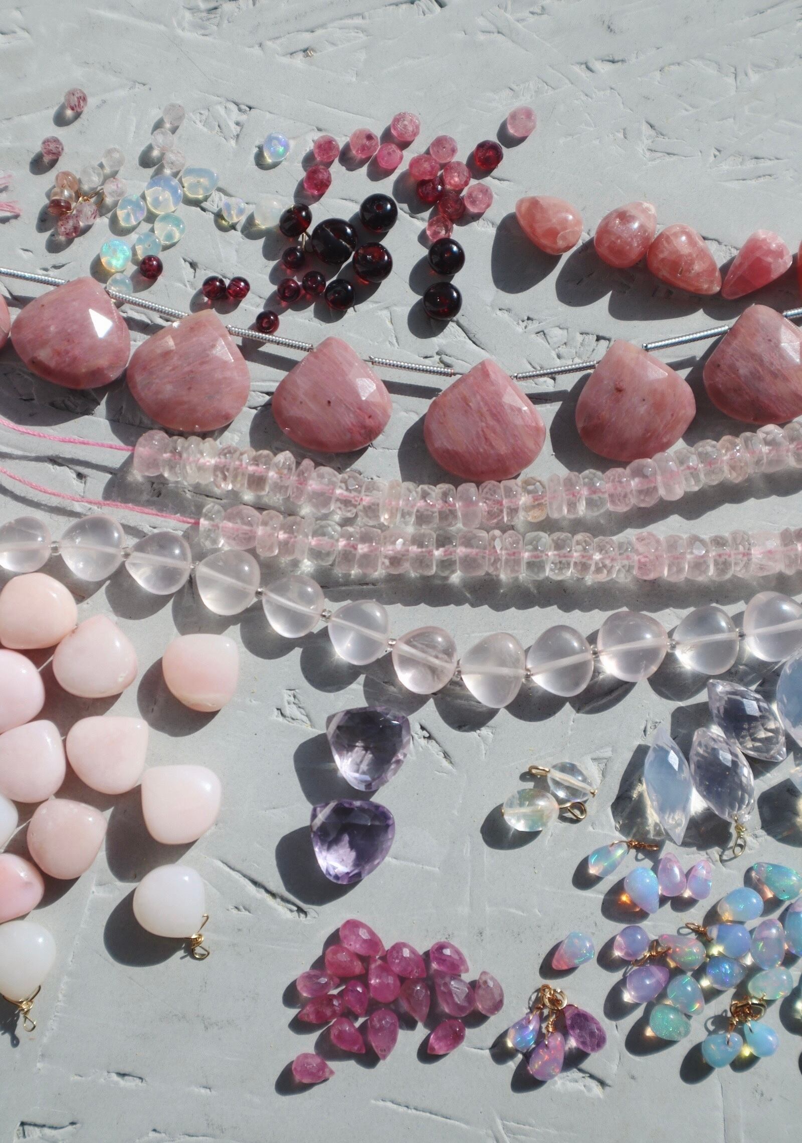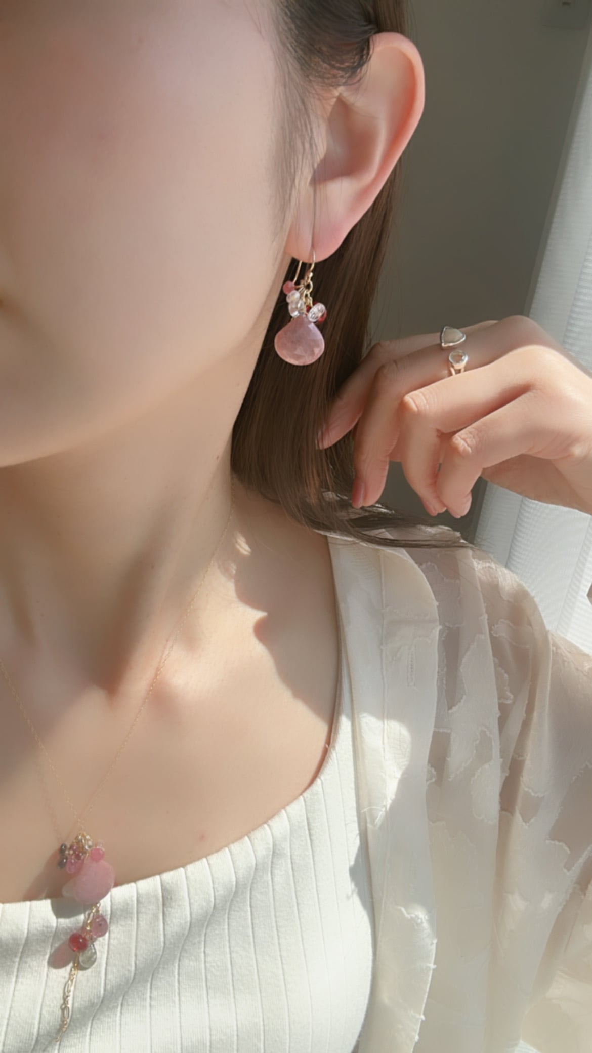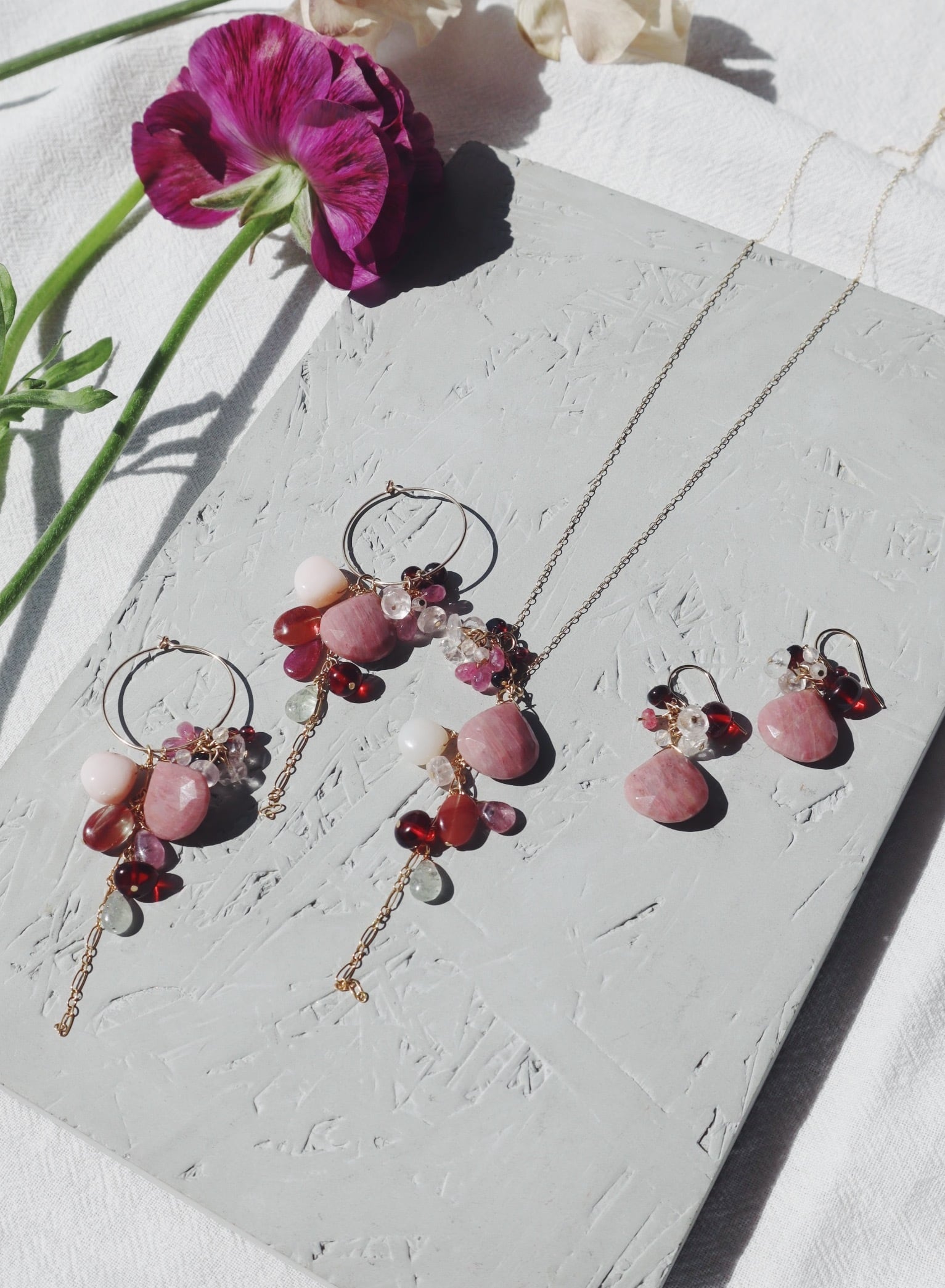 可愛らしいピンクは抵抗あるけど、春らしいファッションを楽しみたいというあなたのための、大人ピンクな天然石ジュエリーをお作りしました。
